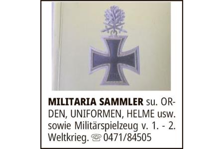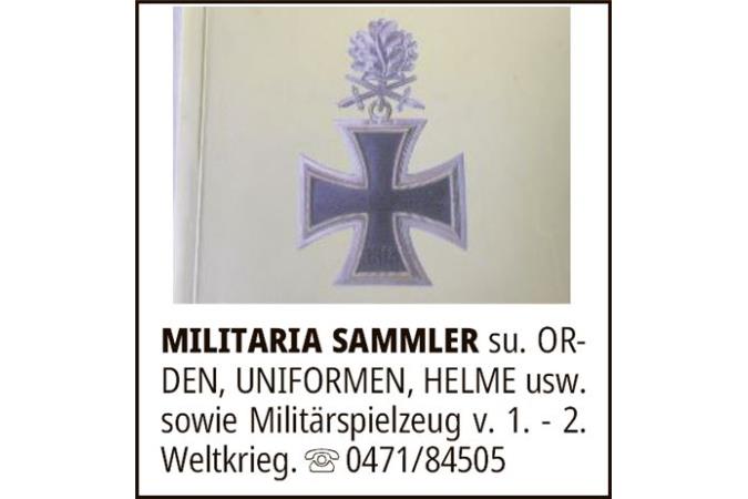 MILITARIA SAMMLER su. ORDEN, UNIFORMEN, HELME usw. sowie Militärspielzeug v. 1. - 2. Weltkrieg. s 0471/84505