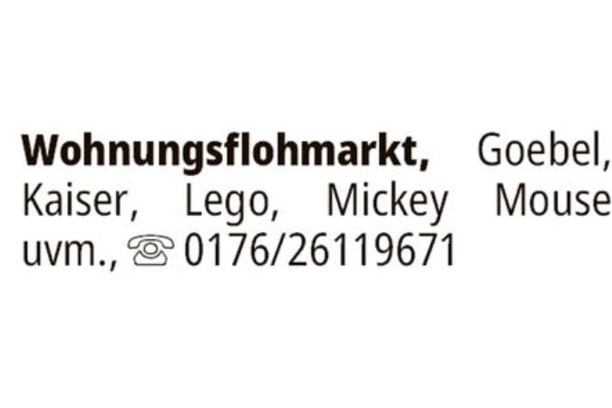 Wohnungsflohmarkt, Goebel, Kaiser, Lego, Mickey Mouse uvm., 0176/26119671