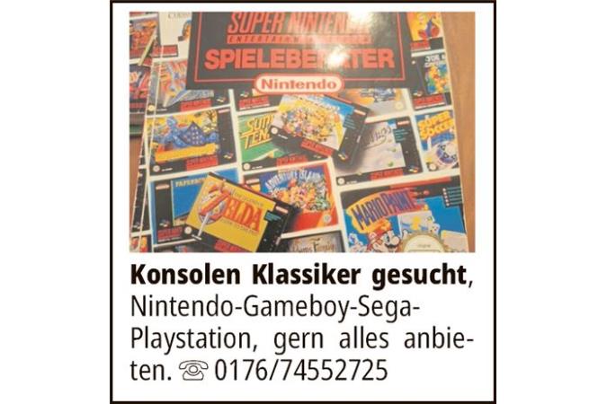 Konsolen Klassiker gesucht, Nintendo-Gameboy-Sega-Playstation, gern alles anbieten. 0176/74552725